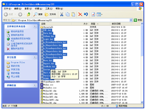 ③刪除所有類型為dat的文件,重新運行QuickMeasuring測量軟件。